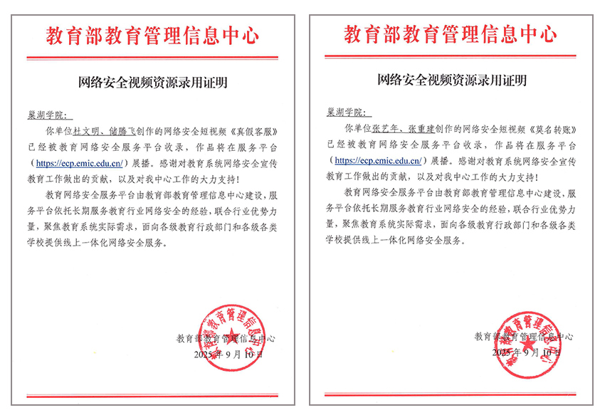 • 巢湖學(xué)院兩部網(wǎng)絡(luò)安全教育作品獲教育部教育管理信息中心錄用